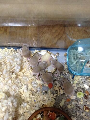 今日は、子ハム達の食事デビュー(#゚ロ゚#)高タンパクゼリーをみんなで必死に食べてました!子育て二回目だからなのか、子ハムを回収することなく、ママハムはのんびり休憩(*'-'*)子ハムも満足したら自分で巣に帰ってました!子ハムを何回か撫でたのですが、ま…