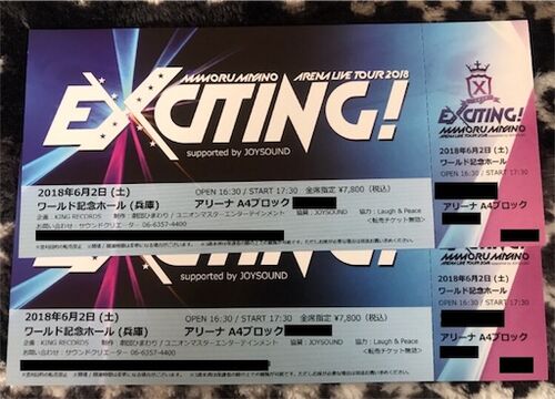 MAMORU MIYANO ARENA LIVE TOUR 2018 〜EXCITING!〜 supported by JOYSOUND 開場 16:30 / 開演 17:30 終了時刻 20:45頃 6/2の兵庫開催のワールド記念ホールでのライブに参加してきました(*´-`) ヤバかったです! 近い!表情が見える! 10周年に相応しい内容…